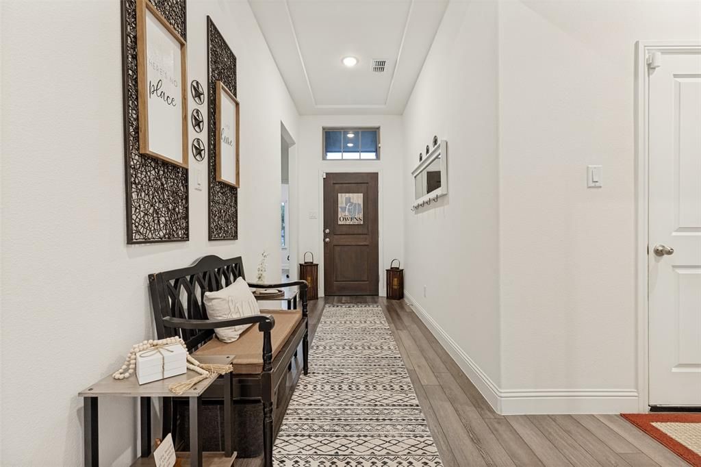 Rare opportunity in Melissa’s Meadow Run community offering a fully furnished, move-in-ready experience with furnishings negotiable! This meticulously cared-for one-level home pairs generous space, thoughtful upgrades, and flexible living with the convenience buyers are looking for. Enhanced beyond its original design, the home now features 5 bedrooms across 2,111 square feet, creating a flexible layout that works beautifully for everyday living, guests, or multigenerational needs. Inside, the open-concept layout connects the spacious living room, breakfast area, and kitchen, creating an inviting space for both entertaining and daily living. The kitchen serves as the heart of the home, with a large island, pantry, and generous cabinet storage. High ceilings, luxury vinyl plank flooring, upgraded ceiling fans, and well-planned improvements throughout give the home a clean, comfortable, and cohesive feel. The private primary suite is tucked toward the back of the home and offers a relaxing retreat with separate vanities, a separate shower, and a large walk-in closet. Two bedrooms are positioned near the front of the home, while two additional bedrooms are positioned toward the middle of the home, providing separation, privacy, and flexibility. The home’s unique 5-bedroom layout is the result of thoughtful, professionally completed enhancements, including a former home office with an added closet and a former tandem garage area that has been converted into an oversized flexible bedroom with a large walk-in closet. This versatile space is ideal as a bedroom, workout room, office, or bonus room, while still preserving a full-size two-car garage. Step outside to an extended covered patio offering a comfortable setting to enjoy quiet evenings outdoors. A detailed list of improvements is available. Just minutes from the community pool, walking trails, US-75, and the Dallas-Fort Worth Metroplex, this home offers a setting buyers can instantly picture themselves enjoying!